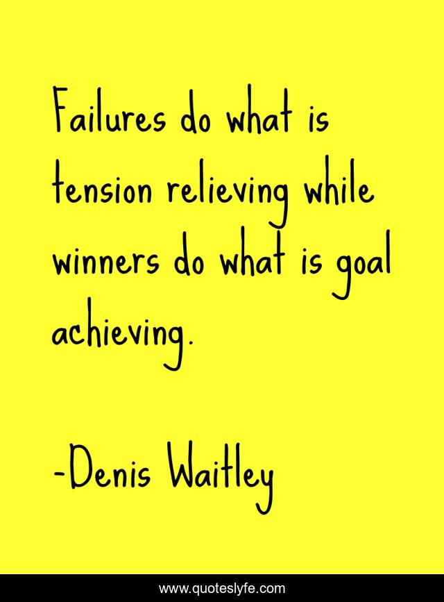 This page presents the quote "Failures do what is tension relieving while winners do what is goal achieving.". Author of this quote is Denis Waitley. This quote is about life, winner, goal, success, win, relieve, game, achievement, achieve,.