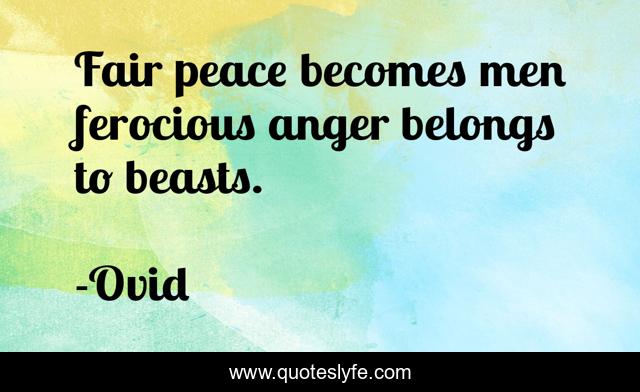 This page presents the quote "Fair peace becomes men ferocious anger belongs to beasts.". Author of this quote is Ovid. This quote is about peace, fair, men,.