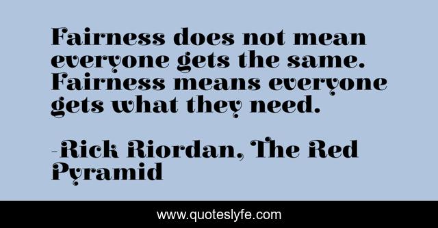 "Rick Riordan, The Red Pyramid Quotes." Quoteslyfe.com, 2025. Fri. 05 Dec. 2025. <https://www.quoteslyfe.com/quote/Fairness-does-not-mean-everyone-gets-the-4825>.
