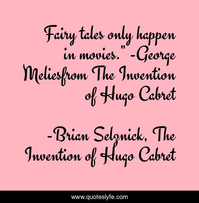 This page presents the quote "Fairy tales only happen in movies." -George Meliesfrom The Invention of Hugo Cabret". Author of this quote is Brian Selznick, The Invention of Hugo Cabret. This quote is about paris, movies, 1930s, historical-fiction,.