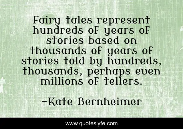This page presents the quote "Fairy tales represent hundreds of years of stories based on thousands of years of stories told by hundreds, thousands, perhaps even millions of tellers.". Author of this quote is Kate Bernheimer. .