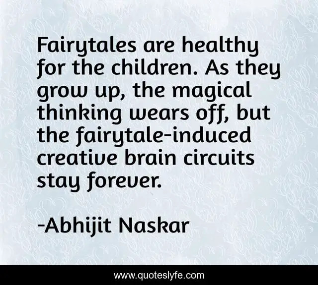 "Abhijit Naskar Quotes." Quoteslyfe.com, 2025. Tue. 09 Dec. 2025. <https://www.quoteslyfe.com/quote/Fairytales-are-healthy-for-the-children-As-99589>.