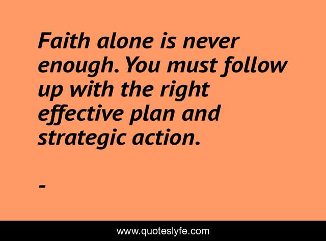 This page presents the quote "Faith alone is never enough. You must follow up with the right effective plan and strategic action.". Author of this quote is . This quote is about plans, edmond-mbiaka, actions, the-right-effective-plan, faith-alone-is-not-enough, strategic-action,.