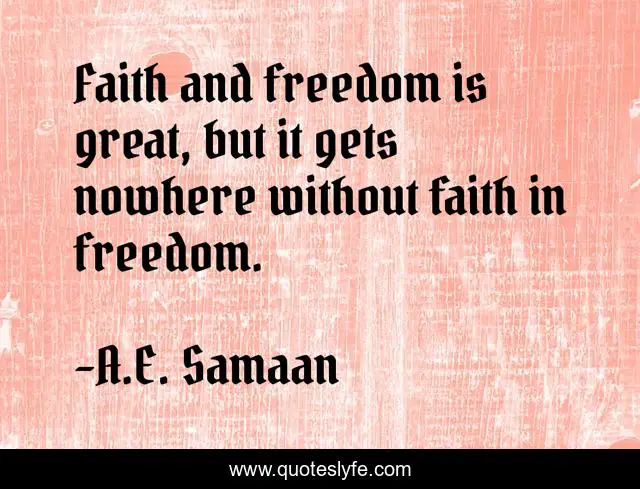 "A.E. Samaan Quotes." Quoteslyfe.com, 2025. Mon. 08 Dec. 2025. <https://www.quoteslyfe.com/quote/Faith-and-freedom-is-great-but-it-55148>.