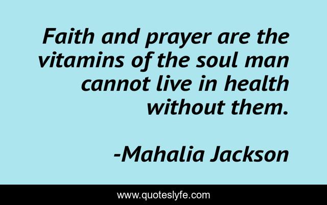 This page presents the quote "Faith and prayer are the vitamins of the soul man cannot live in health without them.". Author of this quote is Mahalia Jackson. This quote is about health, soul, man,.