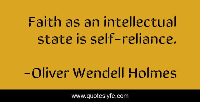 This page presents the quote "Faith as an intellectual state is self-reliance.". Author of this quote is Oliver Wendell Holmes. This quote is about faith, unity,.