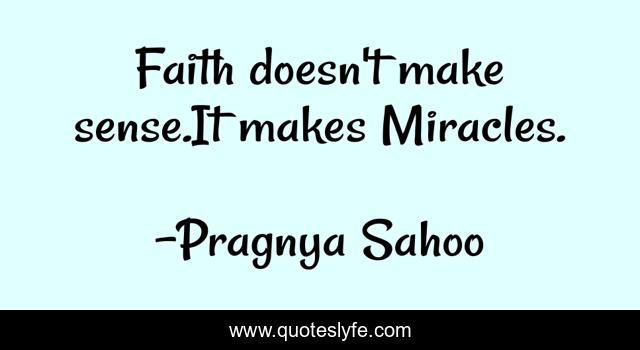 This page presents the quote "Faith doesn't make sense.It makes Miracles.". Author of this quote is Pragnya Sahoo. This quote is about faith, faith-in-yourself, faithfulness,.