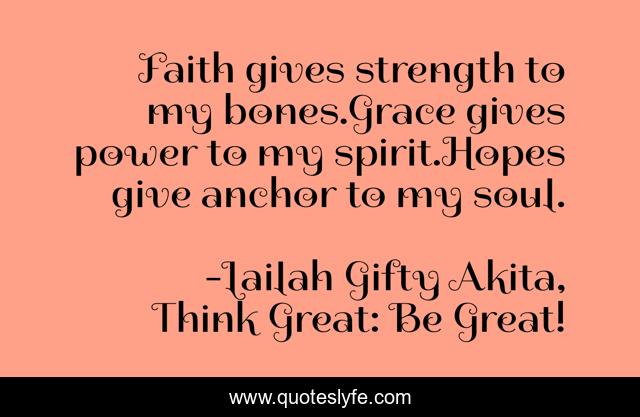 "Lailah Gifty Akita, Think Great: Be Great! Quotes." Quoteslyfe.com, 2025. Tue. 09 Dec. 2025. <https://www.quoteslyfe.com/quote/Faith-gives-strength-to-my-bones-Grace-140387>.