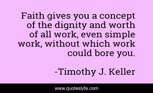 This page presents the quote "Faith gives you a concept of the dignity and worth of all work, even simple work, without which work could bore you.". Author of this quote is Timothy J. Keller. This quote is about vocation, work, boredom,.