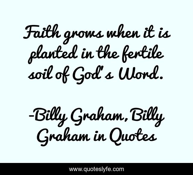 This page presents the quote "Faith grows when it is planted in the fertile soil of God’s Word.". Author of this quote is Billy Graham, Billy Graham in Quotes. This quote is about word-of-god, billy-graham,.