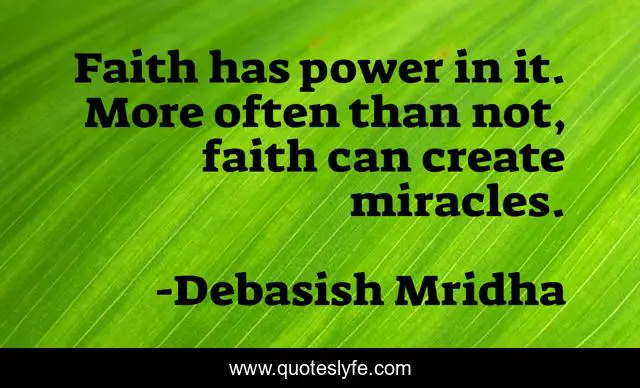 This page presents the quote "Faith has power in it. More often than not, faith can create miracles.". Author of this quote is Debasish Mridha. This quote is about miracles, faith, faith-has-power, philosophy, debasish-mridha, faith-can-create-miracles, quotes, debasish-mridha-md, inspirational,.