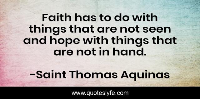 This page presents the quote "Faith has to do with things that are not seen and hope with things that are not in hand.". Author of this quote is Saint Thomas Aquinas. This quote is about faith, belief,.