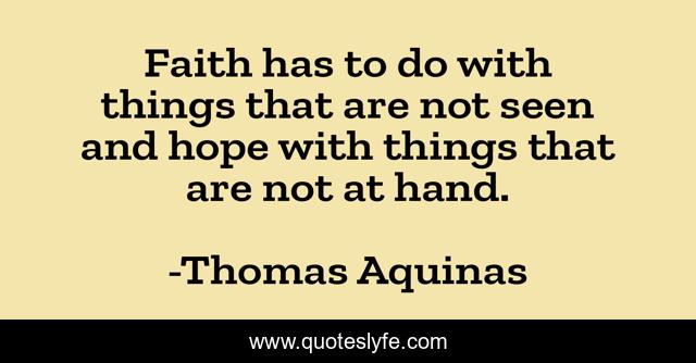This page presents the quote "Faith has to do with things that are not seen and hope with things that are not at hand.". Author of this quote is Thomas Aquinas. This quote is about faith, hand, things,.