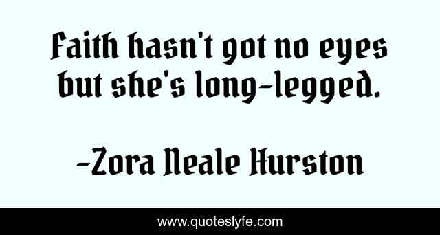 This page presents the quote "Faith hasn't got no eyes but she's long-legged.". Author of this quote is Zora Neale Hurston. This quote is about uncertainties, doubts,.