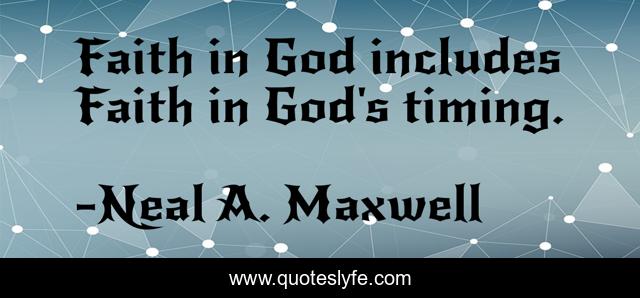 This page presents the quote "Faith in God includes Faith in God's timing.". Author of this quote is Neal A. Maxwell. .