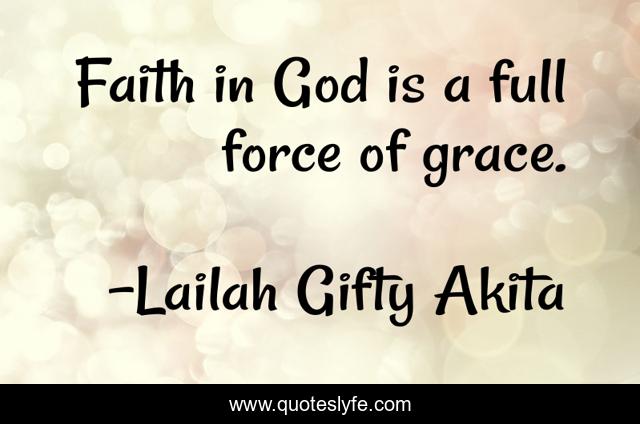 This page presents the quote "Faith in God is a full force of grace.". Author of this quote is Lailah Gifty Akita. This quote is about faith, inspired-soul, christian, grace, god,.
