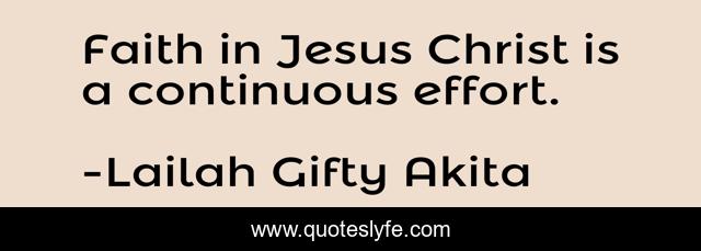 This page presents the quote "Faith in Jesus Christ is a continuous effort.". Author of this quote is Lailah Gifty Akita. This quote is about faith, confidence, christian, positive, motivational, optimistic, effort,.