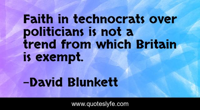 This page presents the quote "Faith in technocrats over politicians is not a trend from which Britain is exempt.". Author of this quote is David Blunkett. This quote is about trend, politicians, which,.