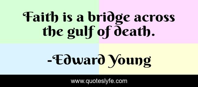This page presents the quote "Faith is a bridge across the gulf of death.". Author of this quote is Edward Young. This quote is about faith, unity,.