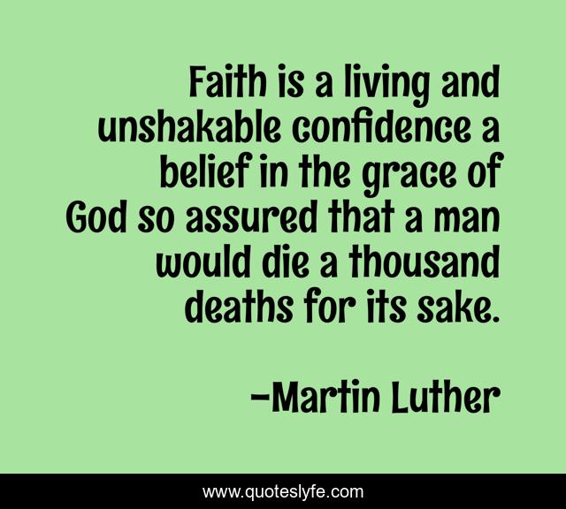This page presents the quote "Faith is a living and unshakable confidence a belief in the grace of God so assured that a man would die a thousand deaths for its sake.". Author of this quote is Martin Luther. This quote is about faith, unity,.