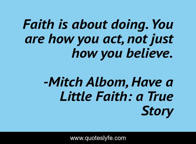 "Mitch Albom, Have a Little Faith: a True Story Quotes." Quoteslyfe.com, 2025. Mon. 08 Dec. 2025. <https://www.quoteslyfe.com/quote/Faith-is-about-doing-You-are-how-25590>.