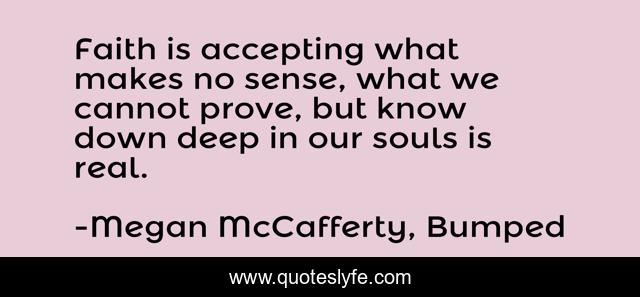 "Megan McCafferty, Bumped Quotes." Quoteslyfe.com, 2025. Sat. 06 Dec. 2025. <https://www.quoteslyfe.com/quote/Faith-is-accepting-what-makes-no-sense-25708>.