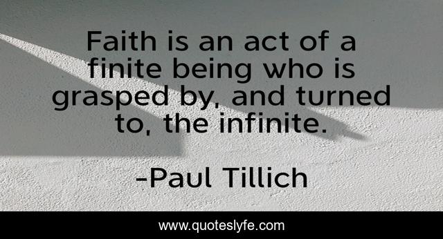 This page presents the quote "Faith is an act of a finite being who is grasped by, and turned to, the infinite.". Author of this quote is Paul Tillich. This quote is about infinite, being, act,.