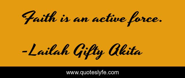This page presents the quote "Faith is an active force.". Author of this quote is Lailah Gifty Akita. This quote is about action, faith, force,.