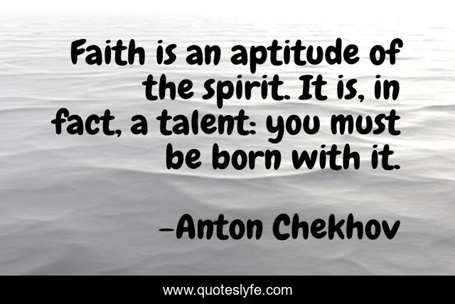 This page presents the quote "Faith is an aptitude of the spirit. It is, in fact, a talent: you must be born with it.". Author of this quote is Anton Chekhov. This quote is about born, talent,.