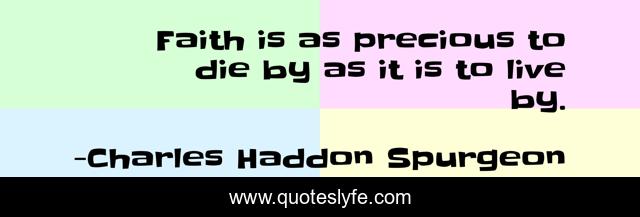 "Charles Haddon Spurgeon Quotes." Quoteslyfe.com, 2025. Fri. 05 Dec. 2025. <https://www.quoteslyfe.com/quote/Faith-is-as-precious-to-die-by-206088>.