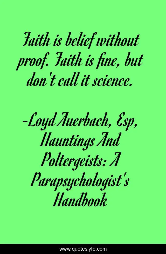 This page presents the quote "Faith is belief without proof. Faith is fine, but don't call it science.". Author of this quote is Loyd Auerbach, Esp, Hauntings And Poltergeists: A Parapsychologist's Handbook. This quote is about science, paranormal,.