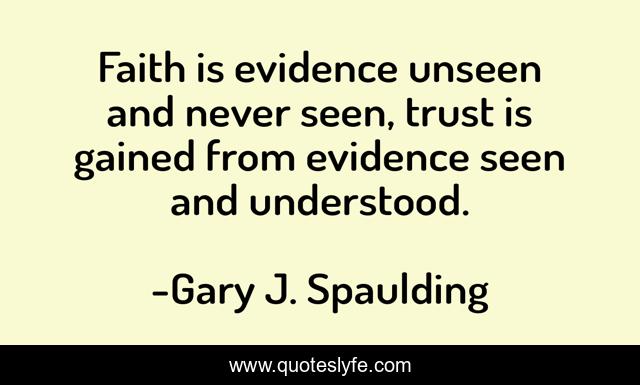 This page presents the quote "Faith is evidence unseen and never seen, trust is gained from evidence seen and understood.". Author of this quote is Gary J. Spaulding. This quote is about faith, trust,.