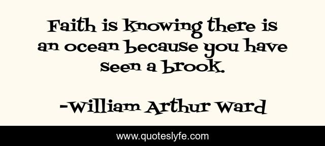 This page presents the quote "Faith is knowing there is an ocean because you have seen a brook.". Author of this quote is William Arthur Ward. This quote is about william-arthur-ward, faith, ocean, inspirational, enthusiasm,.