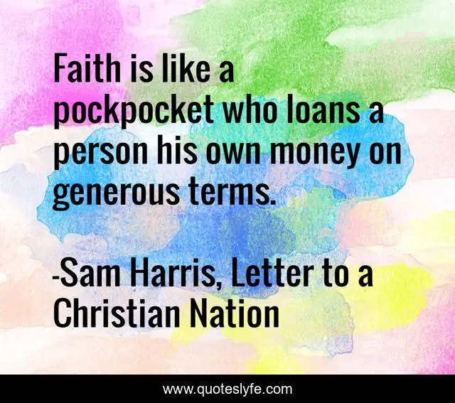 "Sam Harris, Letter to a Christian Nation Quotes." Quoteslyfe.com, 2025. Mon. 08 Dec. 2025. <https://www.quoteslyfe.com/quote/Faith-is-like-a-pockpocket-who-loans-26439>.