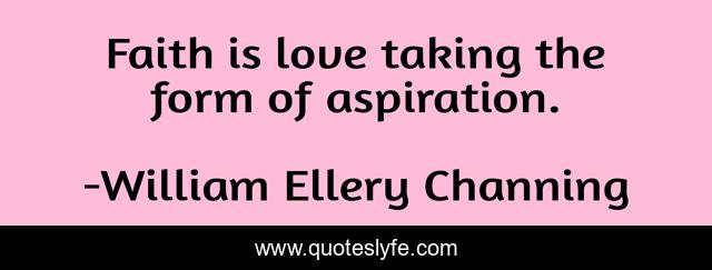 This page presents the quote "Faith is love taking the form of aspiration.". Author of this quote is William Ellery Channing. This quote is about aspire, faith, love, inspiritional, affection,.