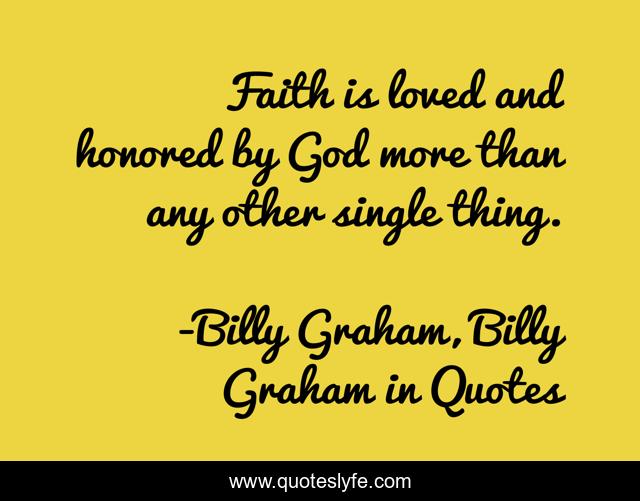 This page presents the quote "Faith is loved and honored by God more than any other single thing.". Author of this quote is Billy Graham, Billy Graham in Quotes. This quote is about faith, billy-graham,.