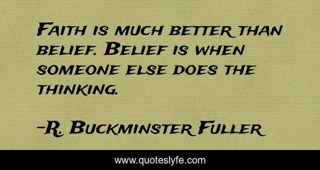 This page presents the quote "Faith is much better than belief. Belief is when someone else does the thinking.". Author of this quote is R. Buckminster Fuller. This quote is about thinking, better, belief,.