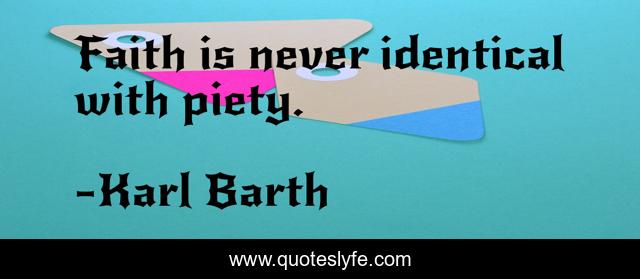 This page presents the quote "Faith is never identical with piety.". Author of this quote is Karl Barth. This quote is about identical, piety,.