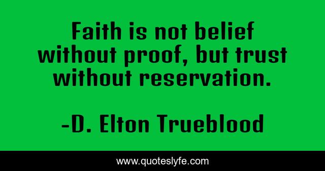 This page presents the quote "Faith is not belief without proof, but trust without reservation.". Author of this quote is D. Elton Trueblood. This quote is about trust, belief, without,.
