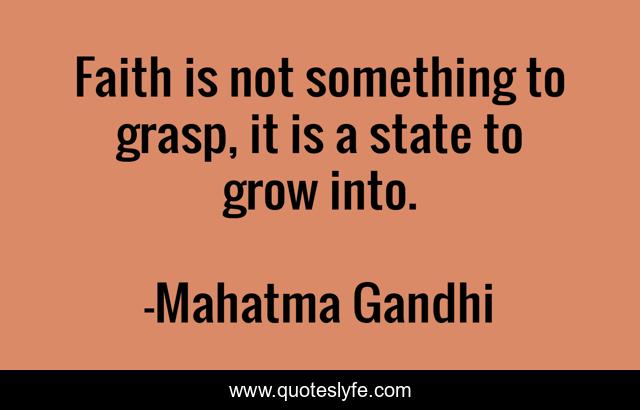 This page presents the quote "Faith is not something to grasp, it is a state to grow into.". Author of this quote is Mahatma Gandhi. .