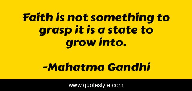 This page presents the quote "Faith is not something to grasp it is a state to grow into.". Author of this quote is Mahatma Gandhi. This quote is about faith, unity,.