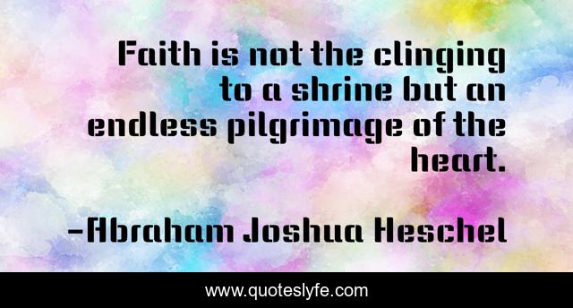 This page presents the quote "Faith is not the clinging to a shrine but an endless pilgrimage of the heart.". Author of this quote is Abraham Joshua Heschel. This quote is about faith, pilgrimage,.