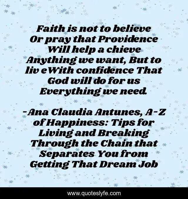 "Ana Claudia Antunes, A-Z of Happiness: Tips for Living and Breaking Through the Chain that Separates You from Getting That Dream Job Quotes." Quoteslyfe.com, 2025. Tue. 09 Dec. 2025. <https://www.quoteslyfe.com/quote/Faith-is-not-to-believe-Or-pray-17496>.