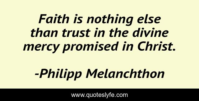 This page presents the quote "Faith is nothing else than trust in the divine mercy promised in Christ.". Author of this quote is Philipp Melanchthon. This quote is about faith, unity,.