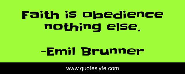 "Emil Brunner Quotes." Quoteslyfe.com, 2025. Sat. 06 Dec. 2025. <https://www.quoteslyfe.com/quote/Faith-is-obedience-nothing-else-264550>.