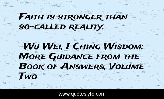 "Wu Wei, I Ching Wisdom: More Guidance from the Book of Answers, Volume Two Quotes." Quoteslyfe.com, 2025. Fri. 05 Dec. 2025. <https://www.quoteslyfe.com/quote/Faith-is-stronger-than-so-called-reality-94259>.