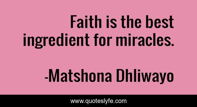 "Matshona Dhliwayo Quotes." Quoteslyfe.com, 2025. Fri. 05 Dec. 2025. <https://www.quoteslyfe.com/quote/Faith-is-the-best-ingredient-for-miracles-201063>.