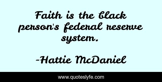 This page presents the quote "Faith is the black person's federal reserve system.". Author of this quote is Hattie McDaniel. This quote is about person, black, system,.
