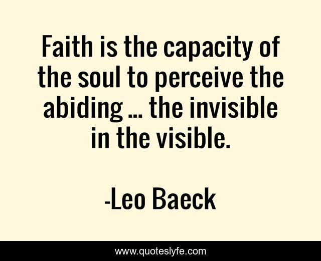 This page presents the quote "Faith is the capacity of the soul to perceive the abiding ... the invisible in the visible.". Author of this quote is Leo Baeck. This quote is about faith, belief,.