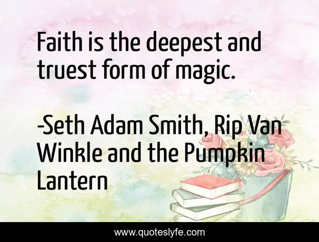 This page presents the quote "Faith is the deepest and truest form of magic.". Author of this quote is Seth Adam Smith, Rip Van Winkle and the Pumpkin Lantern. This quote is about faith, magic, faith-is-magic, power-of-faith, power-of-belief, magical, true-magic, faith-is-magical,.